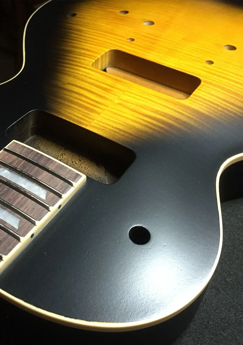 In ogni chitarra che costruisco cerco di dare il meglio di me stesso, di selezionare attentamente i materiali e lavorarli tenendo bene in mente di voler creare qualcosa di unico, duraturo e professionale, sia nelle repliche che nei strumenti custom su specifiche e desideri del cliente. Utilizzo essenze scelte in base ai progetti, hardware di qualità indiscussa, consigliando soluzioni tecniche per raggiungere determinati risultati in termini di suono e suonabilità
